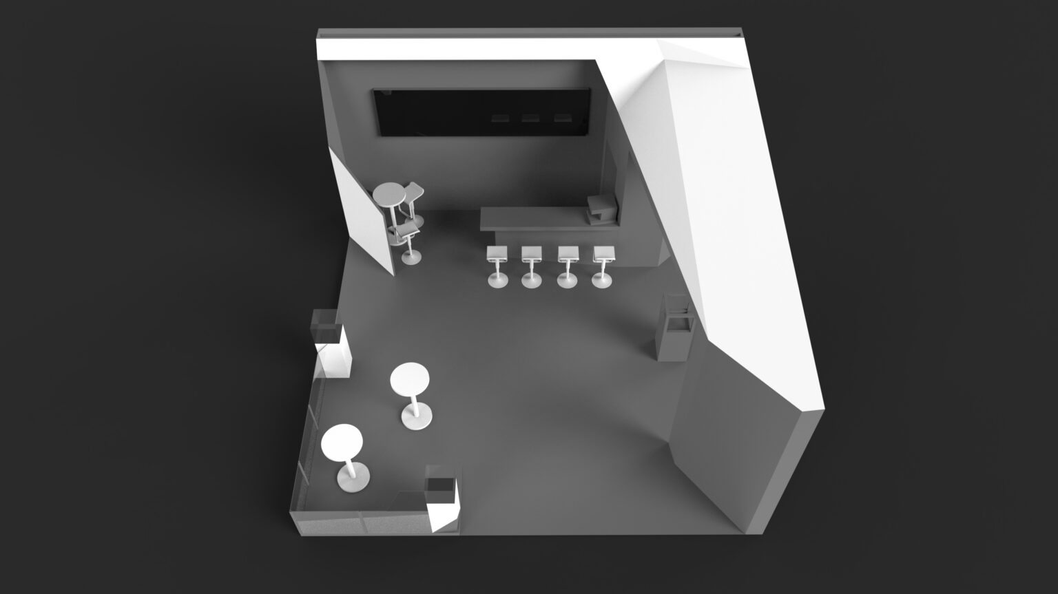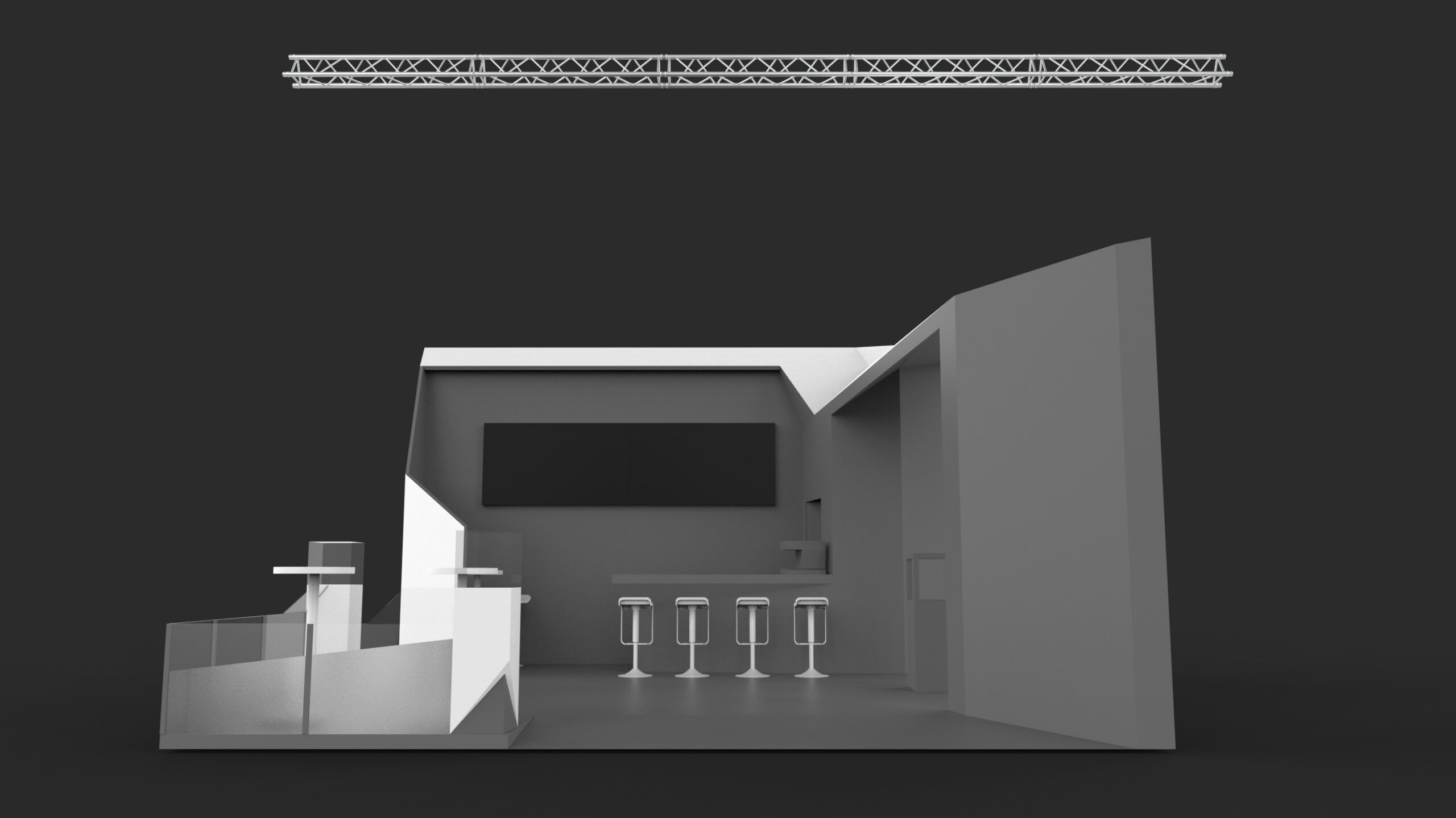 he development of the booth concept began with an analysis of the exhibition hall layout, as well as a study of neighboring booths, in order to identify the main traffic flows and hotspots. Based on this, we were able to determine which sightlines were most important and how to guide visitor movement through the booth most effectively. The booth architecture itself was designed to reflect the precision of the technology on display.